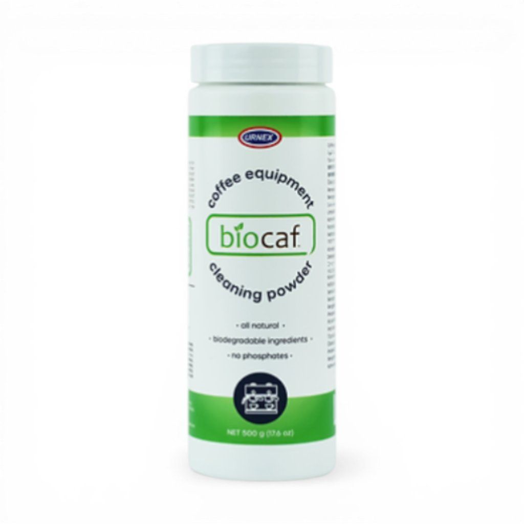 Ekologický čisticí prášek Biocaf (500 g) pro profesionální údržbu kávovarů. Efektivně a šetrně odstraňuje kávové usazeniny a oleje z hlav kávovarů, pák a sítek. 100% biologicky odbouratelný, bez fosfátů a GMO. Zajistěte si dokonalou chuť kávy a prodlužte životnost technologie bez chemického zápachu.