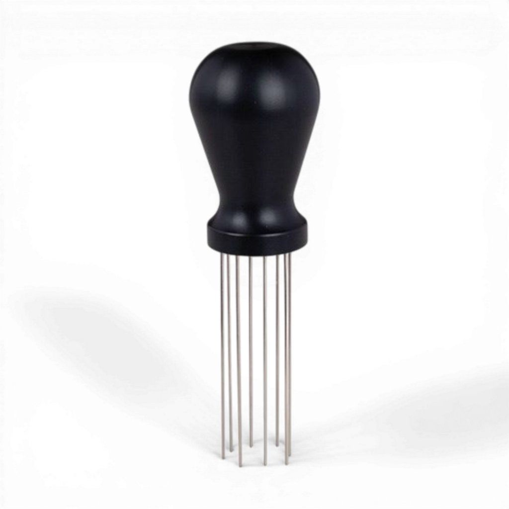 Společnost Metallurgica Motta je známá výrobou robustního a funkčního vybavení, které vydrží roky. Tento WDT nástroj se skládá z ergonomické rukojeti a sady nerezových jehel. Jehly jsou navrženy tak, aby byly dostatečně tenké pro efektivní rozbití shluků kávy, ale zároveň dostatečně pevné, aby se neohýbaly při běžném používání. Na rozdíl od improvizovaných řešení (jako jsou kancelářské sponky nebo párátka) poskytuje tento nástroj profesionální a hygienické řešení pro vaše baristické potřeby. Jeho design navíc skvěle ladí s ostatním příslušenstvím Motta, jako jsou konvičky nebo tampery.