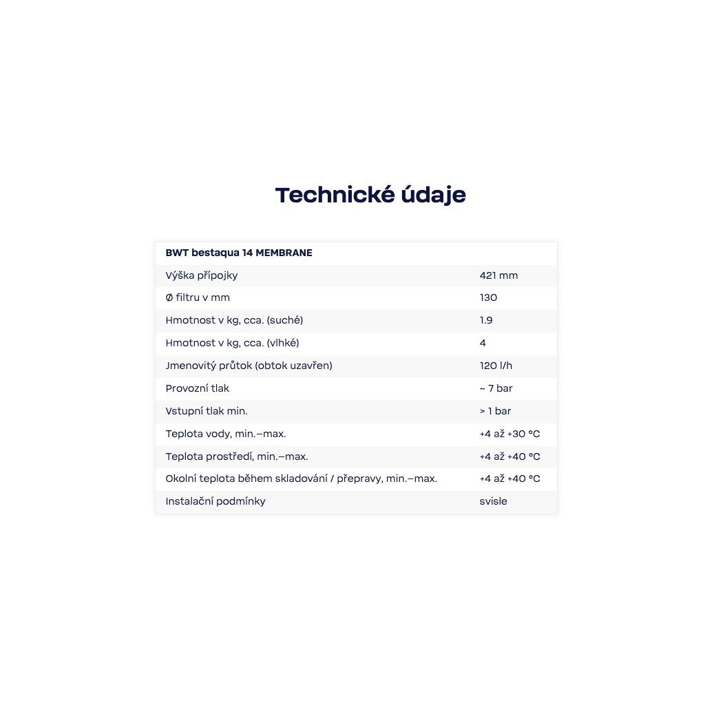 Konstrukce BWT bestaqua MEMBRANE využívá pokročilou modulovou technologii, která zásadně zjednodušuje správu reverzní osmózy. Membrána dosahuje jmenovitého průtoku 120 litrů za hodinu, což zaručuje dostatečnou zásobu upravené vody i v špičkách. Inovativní design umožňuje kombinovaný odvod permeátu i koncentrátu přímo přes integrovanou hlavu, čímž odpadá složité propojování hadiček. Filtr vykazuje vysokou míru odsolení a je navržen tak, aby odolával vlivům chlóru a pevných částic, což výrazně prodlužuje jeho životnost a stabilitu výkonu při provozním tlaku kolem 7 bar.