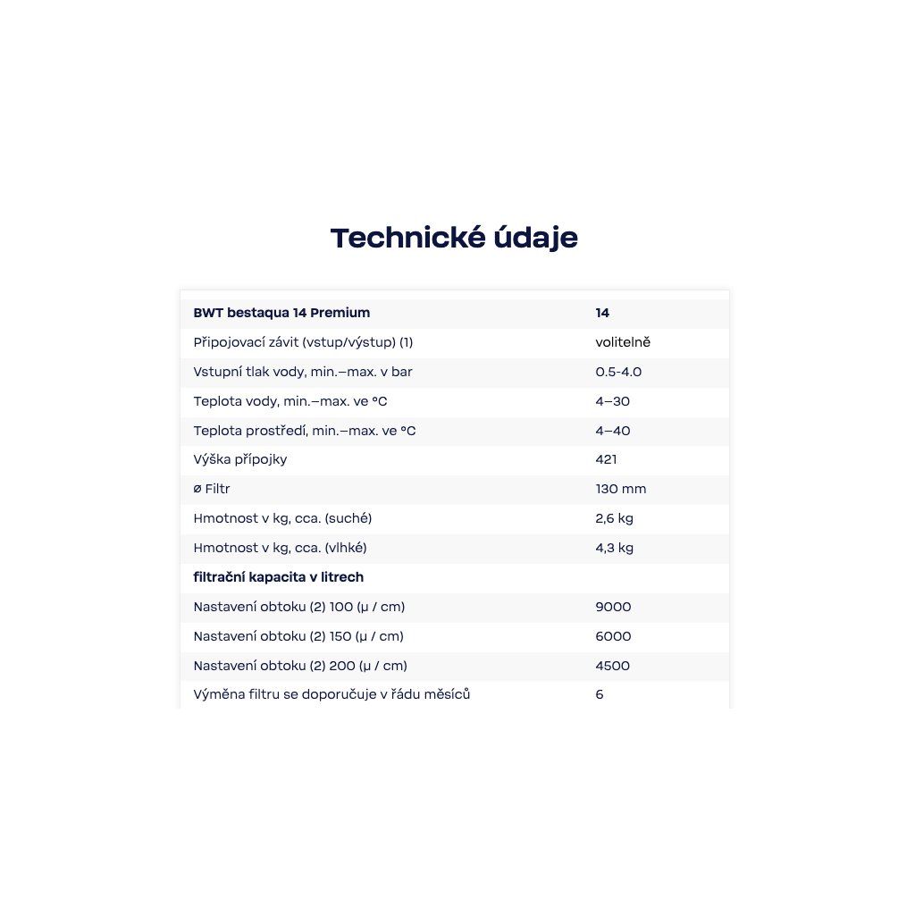 Filtr BWT bestaqua 14 PREMIUM využívá unikátní metodu mineralizace hořčíkem, která nahrazuje agresivní složky vody a stabilizuje její pH. Tento proces je zásadní nejen pro chuť, ale i pro technický stav zařízení. Správně mineralizovaná voda totiž nevytváří vodní kámen a zároveň není korozivní, což je častý problém u příliš měkké vody z osmózy[cite: 20, 23]. Modul je navržen pro vysokou efektivitu a konstantní uvolňování minerálů po celou dobu životnosti patrony. Konstrukce filtru je odolná a optimalizovaná pro maximální hygienu, přičemž stříbro obsažené v uhlíkovém bloku aktivně brání množení bakterií uvnitř systému[cite: 7, 22].