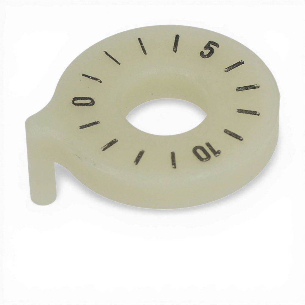 Ukazatel se umisťuje pod ovládací knoflík/šroub regulace na čele hlavy. Při montáži dbejte na správné usazení do výřezu, aby se ukazatel neotáčel spolu s osou, ale zůstal fixní vůči tělu hlavy.