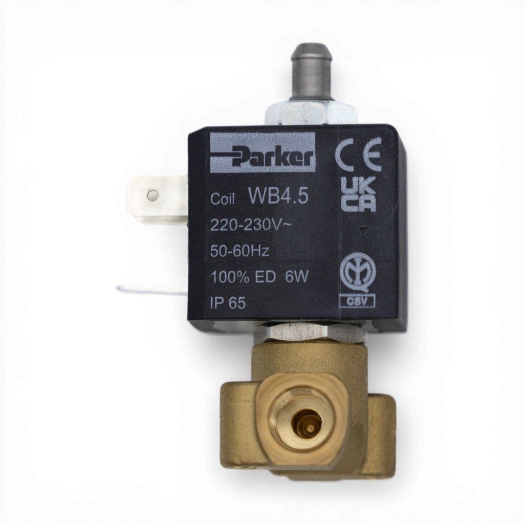 Ventil třícestný, 1/8", kompletní, Parker, 230V, malý, odpad na silikon. hadičku